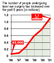 данным маркетинговой компании Market Scope, специализирующейся на оптических операциях, число людей, проходящих лазерную хирургию глаза, растет с каждым годом с момента ее создания в 1996 году, когда