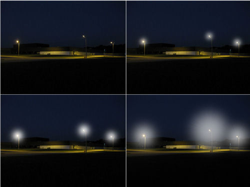Ниже приведена ночная сцена, изображающая ореолы после операции LASIK, которые становятся все более выраженными.
