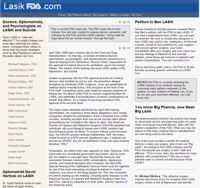 LasikFDA.com :: Разоблачает обман, коррупцию и сговор со стороны FDA и индустрии LASIK. С сайта: "Вы читали о шумихе вокруг 10-минутного чуда. Теперь давайте узнаем правду". В нем рассказывается о событиях, произошедших на слушаниях Комиссии по офтальмологическим устройствам 25 апреля 2008 года, с видеозаписями и расшифровками свидетельских показаний. Показаны параллели между "Big Pharma", "Big Tobacco" и "Big LASIK".